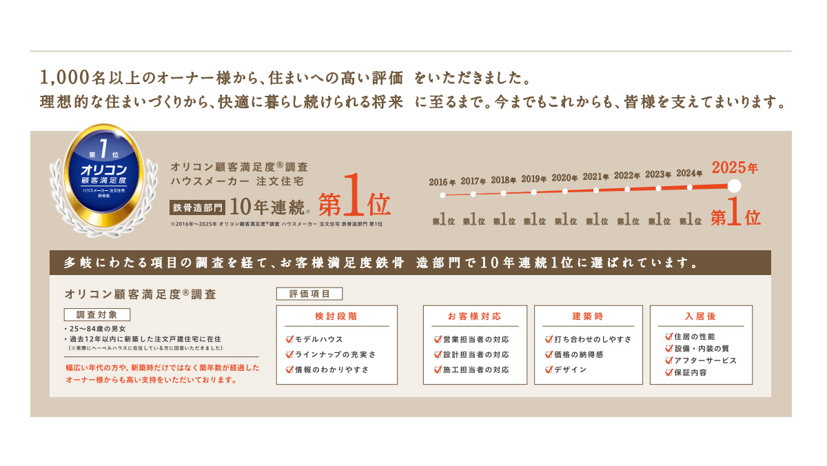 1998年には50年長期点検など業界に先駆けてサービス体制もさらに進化させ「ロングライフ住宅の実現」を宣言しました。